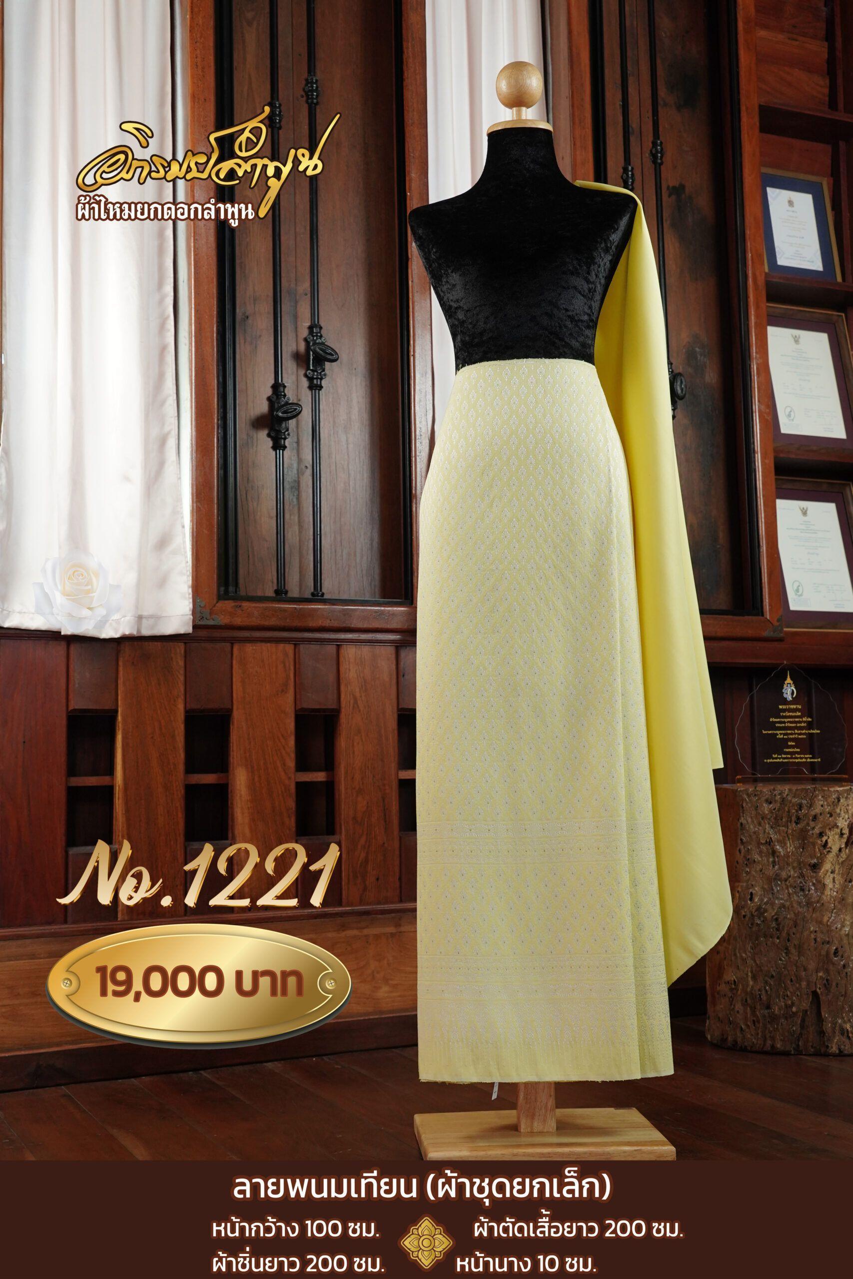 ผ้าชุดยกเล็กลายพนมเทียน หน้ากว้าง 100ซม. ผ้าตัดเสื้อยาว 200ซม. ผ้าซิ่นยาว 200ซม. หน้านาง10ซม.