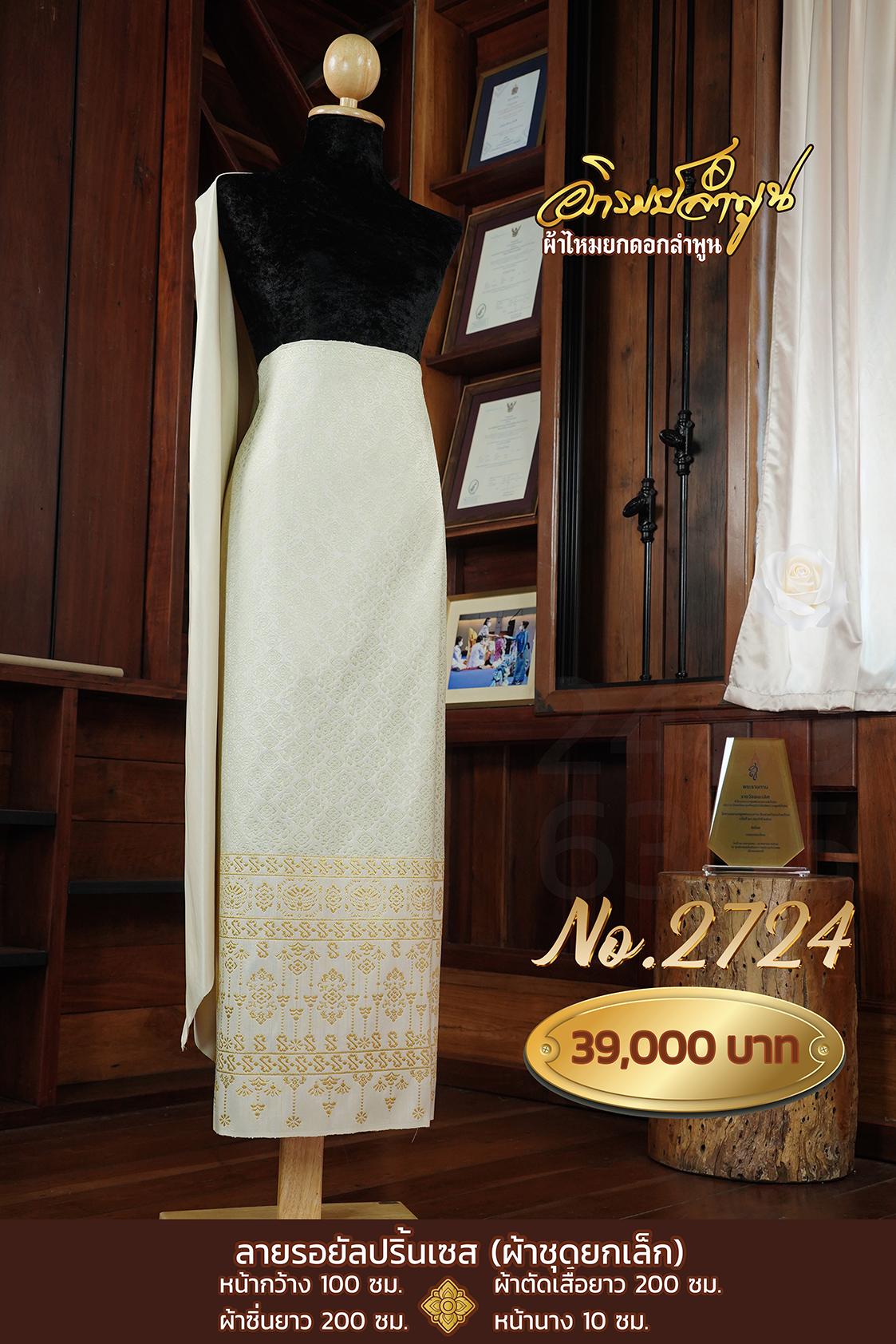 ผ้าชุดยกเล็กลายรอยัลปริ้นเซส หน้ากว้าง 100ซม. ผ้าตัดเสื้อยาว 200ซม. ผ้าซิ่นยาว 200ซม. หน้านาง10ซม.