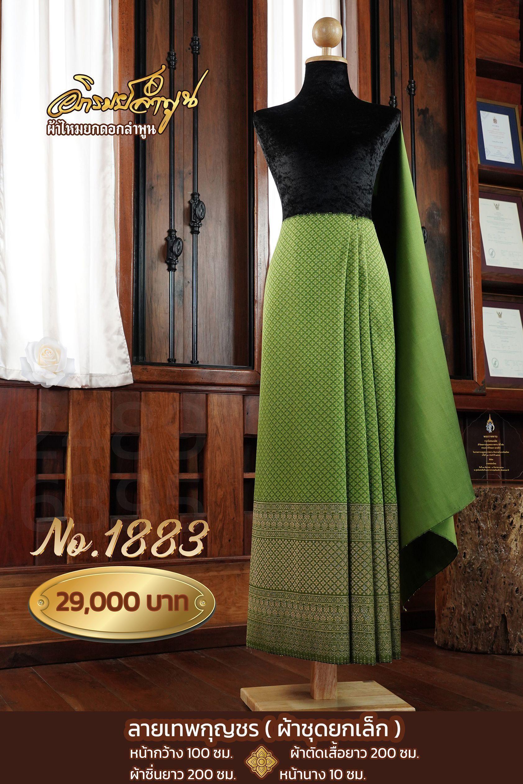 ผ้าชุดยกเล็กลายเทพกุญชร หน้ากว้าง 100ซม. ผ้าตัดเสื้อยาว 200ซม. ผ้าซิ่นยาว 200ซม. หน้านาง10ซม.