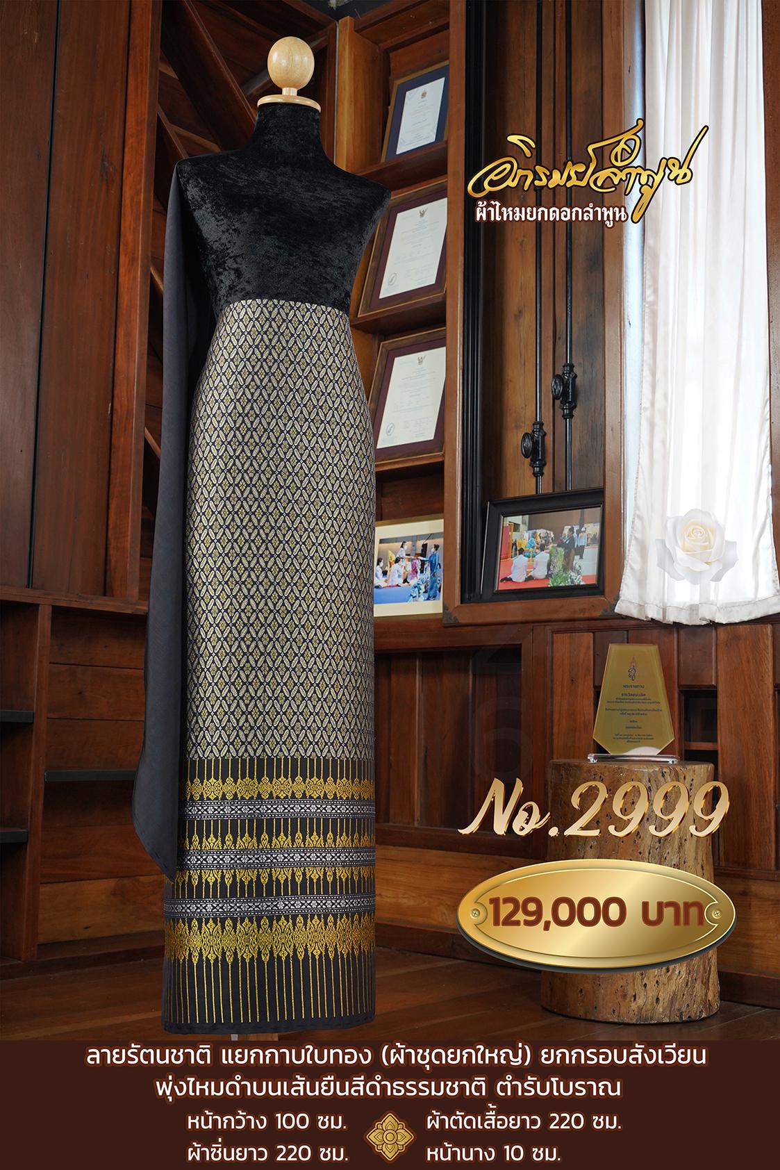 ผ้าชุดยกใหญ่ ลาย รัตนชาติ (แยกกาบใบทอง) ยกกรอบสังเวียน พุ่งไหมดำบนเส้นยืนสีดำธรรมชาติตำรับโบราณหน้ากว้าง100ซม. ผ้าตัดเสื้อยาว220ซม. ผ้าซิ่นยาว220ซม. หน้านาง10ซม.