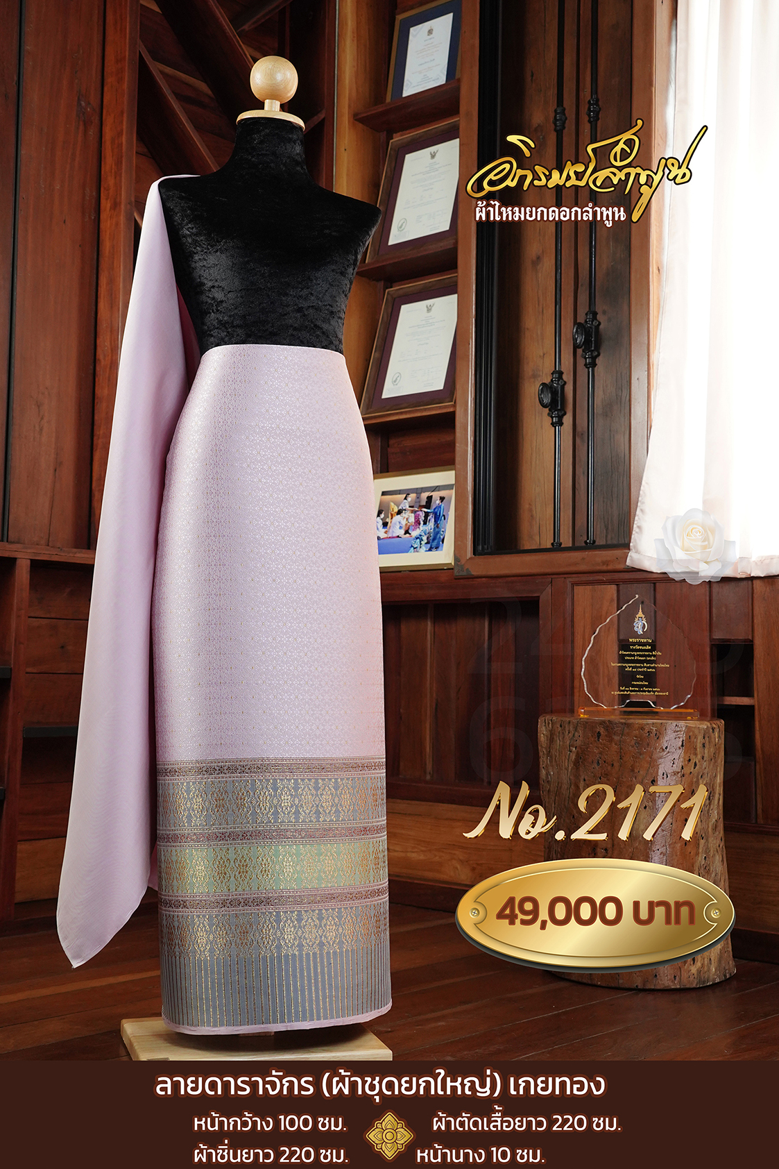 ผ้าชุดยกใหญ่ลาย ดาราจักรถมเกยทอง หน้ากว้าง100ซม. ผ้าตัดเสื้อยาว220ซม. ผ้าซิ่นยาว220ซม. หน้านาง10ซม.