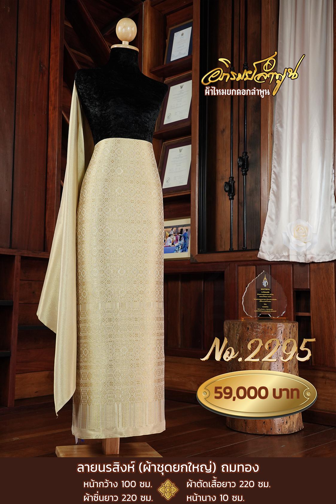 ผ้าชุดยกใหญ่ลายนรสิงห์ถมทอง หน้ากว้าง100ซม. ผ้าตัดเสื้อยาว220ซม. ผ้าซิ่นยาว220ซม. หน้านาง10ซม.