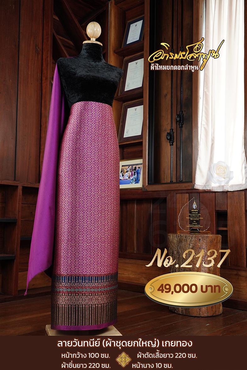 ผ้าชุดยกใหญ่ ลายวันทนีย์เกยทอง หน้ากว้าง100ซม. ผ้าตัดเสื้อยาว220ซม. ผ้าซิ่นยาว220ซม. หน้านาง10ซม.