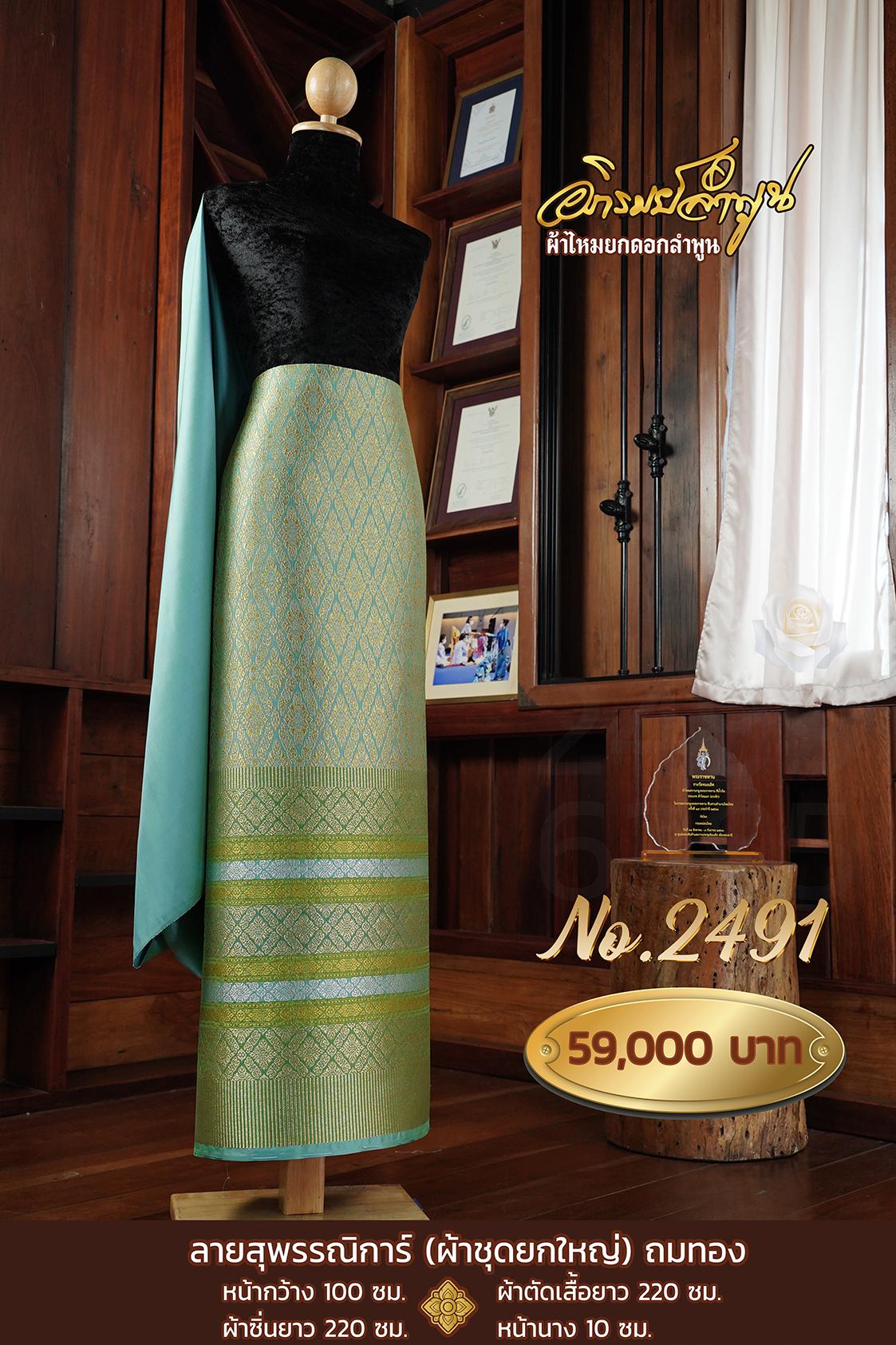ผ้าชุดยกใหญ่ลายสุพรรณิการ์ถมทอง หน้ากว้าง100ซม. ผ้าตัดเสื้อยาว220ซม. ผ้าซิ่นยาว220ซม. หน้านาง10ซม.