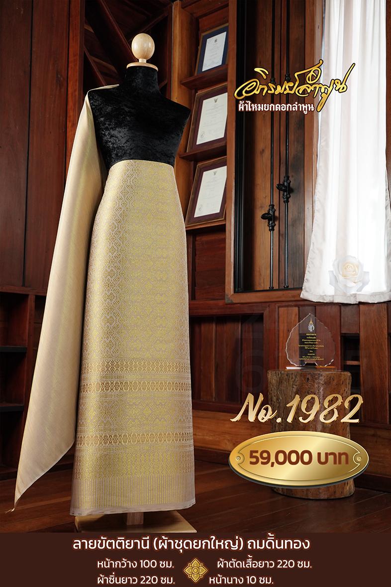 ผ้าชุดยกใหญ่ ลายขัตติยานีถมดิ้นทอง หน้ากว้าง100ซม. ผ้าตัดเสื้อยาว220ซม. ผ้าซิ่นยาว220ซม. หน้านาง10ซม.
