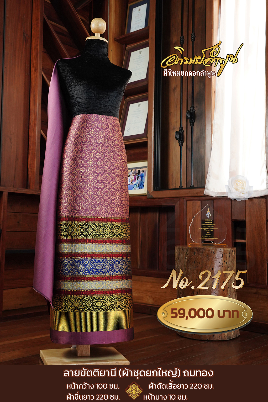 ผ้าชุดยกใหญ่ ลายขัตติยานีถมทอง หน้ากว้าง100ซม. ผ้าตัดเสื้อยาว220ซม. ผ้าซิ่นยาว220ซม. หน้านาง10ซม.
