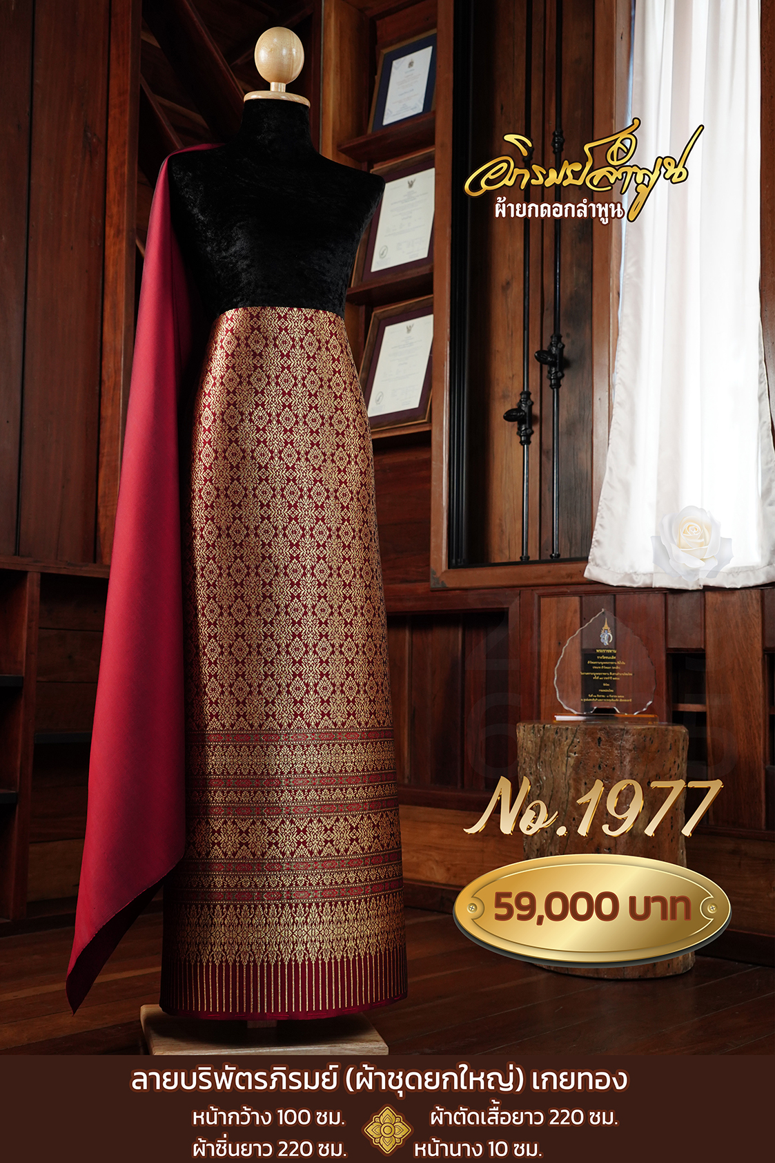 ผ้าชุดยกใหญ่ลายบริพัตรภิรมย์ ถมดิ้นทอง หน้ากว้าง100ซม. ผ้าตัดเสื้อยาว220ซม. ผ้าซิ่นยาว220ซม. หน้านาง10ซม.