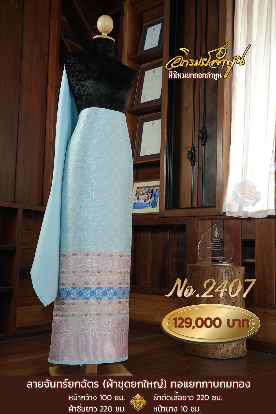 ผ้าชุดยกใหญ่ ลายจันทร์ยกฉัตรทอแยกกาบถมทอง หน้ากว้าง100ซม. ผ้าตัดเสื้อยาว220ซม. ผ้าซิ่นยาว220ซม. หน้านาง10ซม.