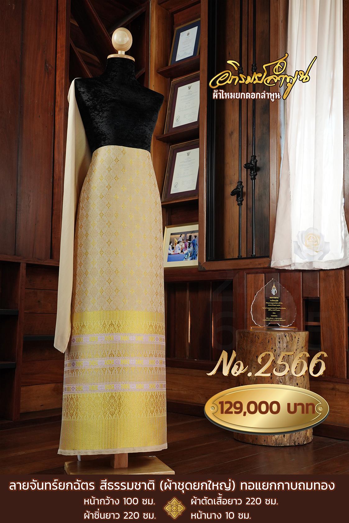 ผ้าชุดยกใหญ่ ลายจันทร์ยกฉัตรทอแยกกาบถมทอง สีธรรมชาติ หน้ากว้าง100ซม. ผ้าตัดเสื้อยาว220ซม. ผ้าซิ่นยาว220ซม. หน้านาง10ซม.