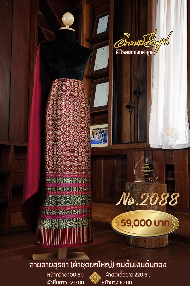 ผ้าชุดยกใหญ่ลายฉายสุริยาถมดิ้นทอง หน้ากว้าง100ซม. ผ้าตัดเสื้อยาว220ซม. ผ้าซิ่นยาว220ซม. หน้านาง10ซม.