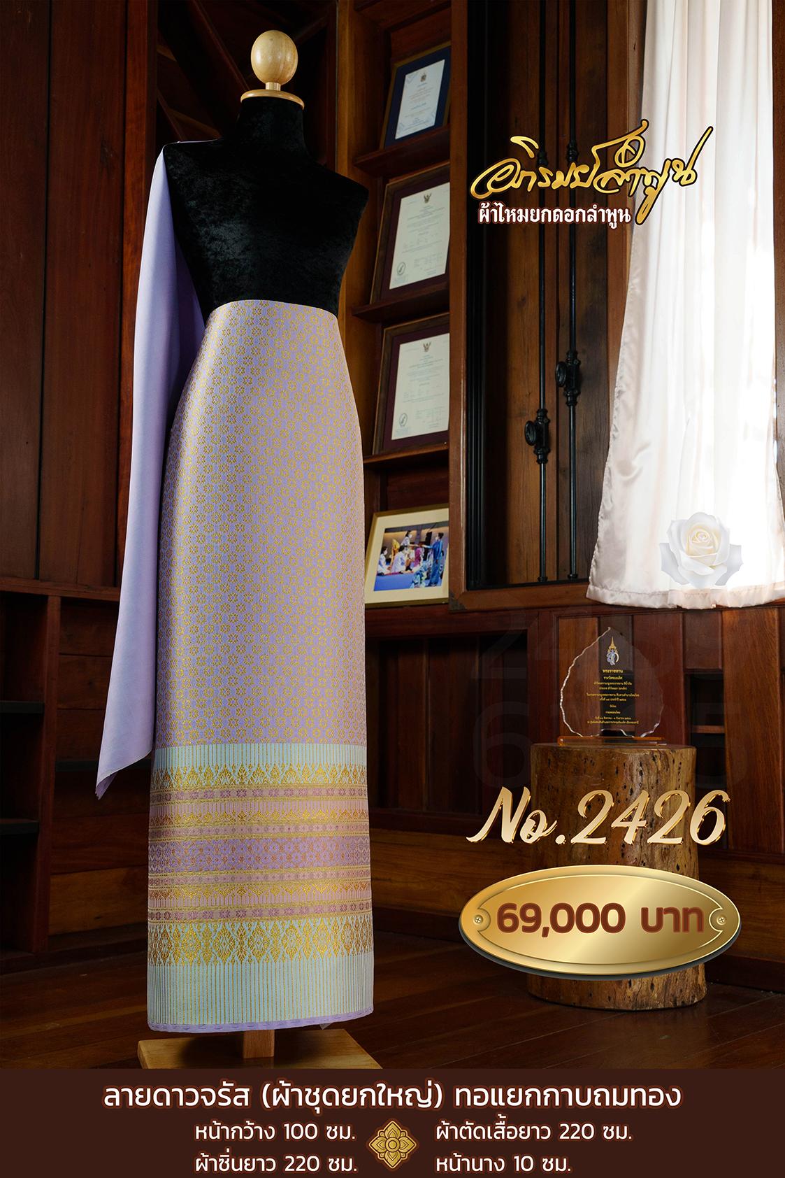 ผ้าชุดยกใหญ่ ลายดาวจรัส(ทอแยกกาบถมทอง) หน้ากว้าง100ซม. ผ้าตัดเสื้อยาว220ซม. ผ้าซิ่นยาว220ซม. หน้านาง10ซม.