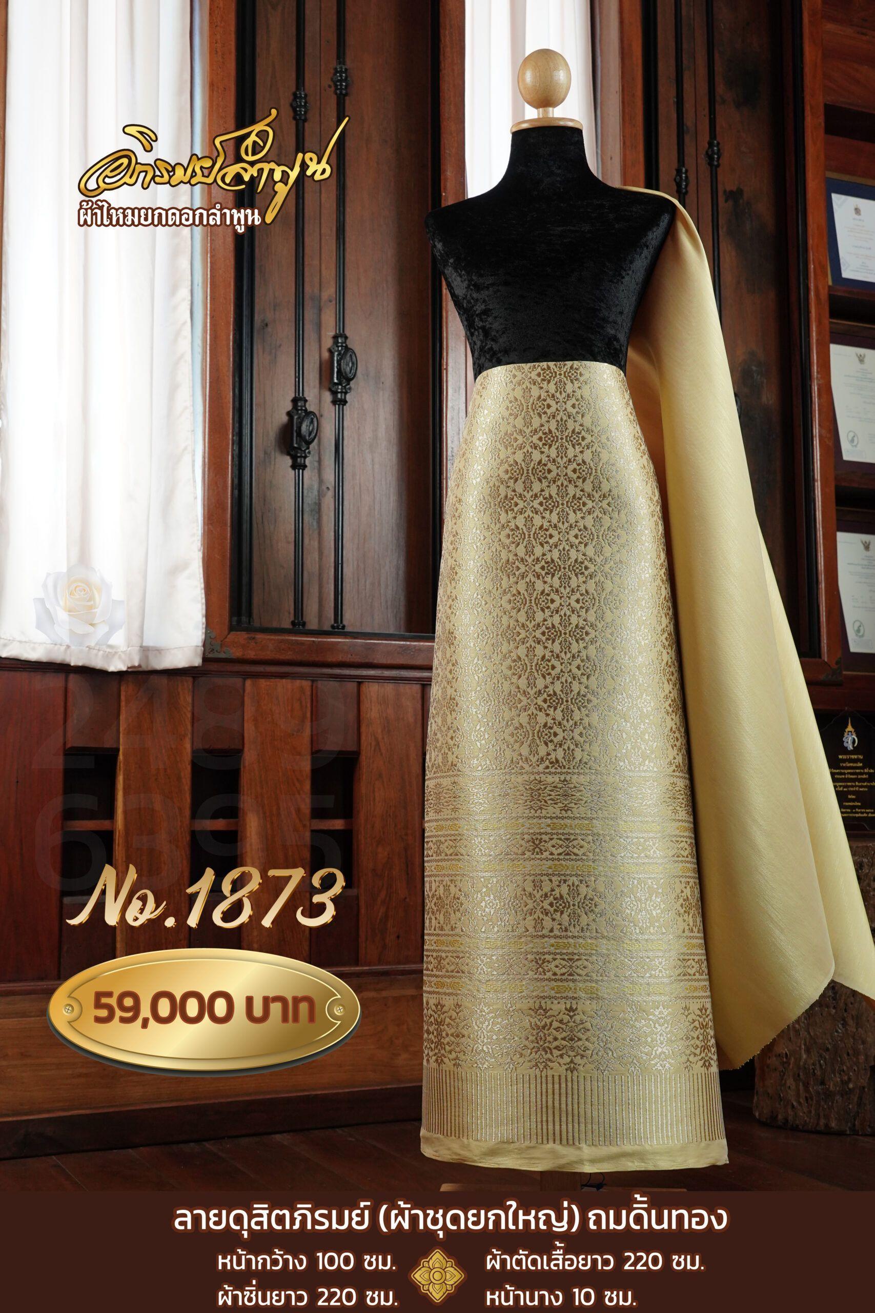 ผ้าชุดยกใหญ่ ลายดุสิตภิรมย์ถมดิ้นทอง No.1873