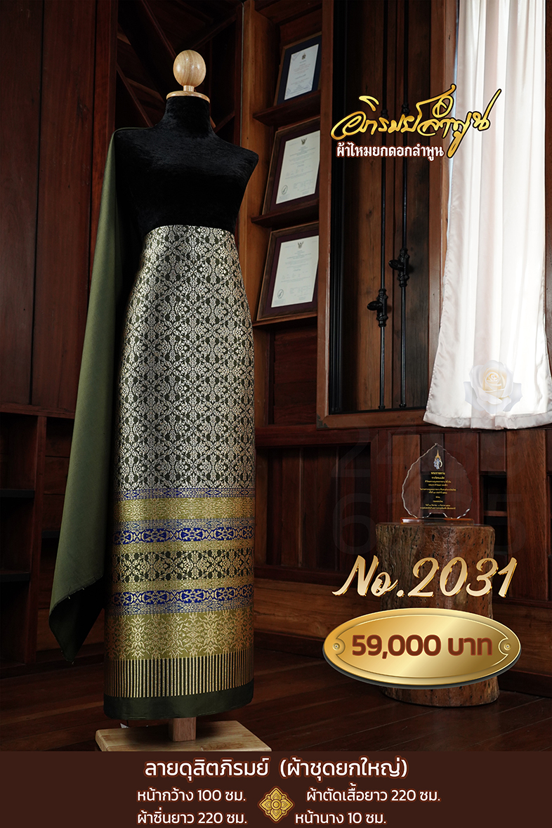 ผ้าชุดยกใหญ่ ลายดุสิตภิรมย์ หน้ากว้าง100ซม. ผ้าตัดเสื้อยาว220ซม. ผ้าซิ่นยาว220ซม. หน้านาง10ซม.