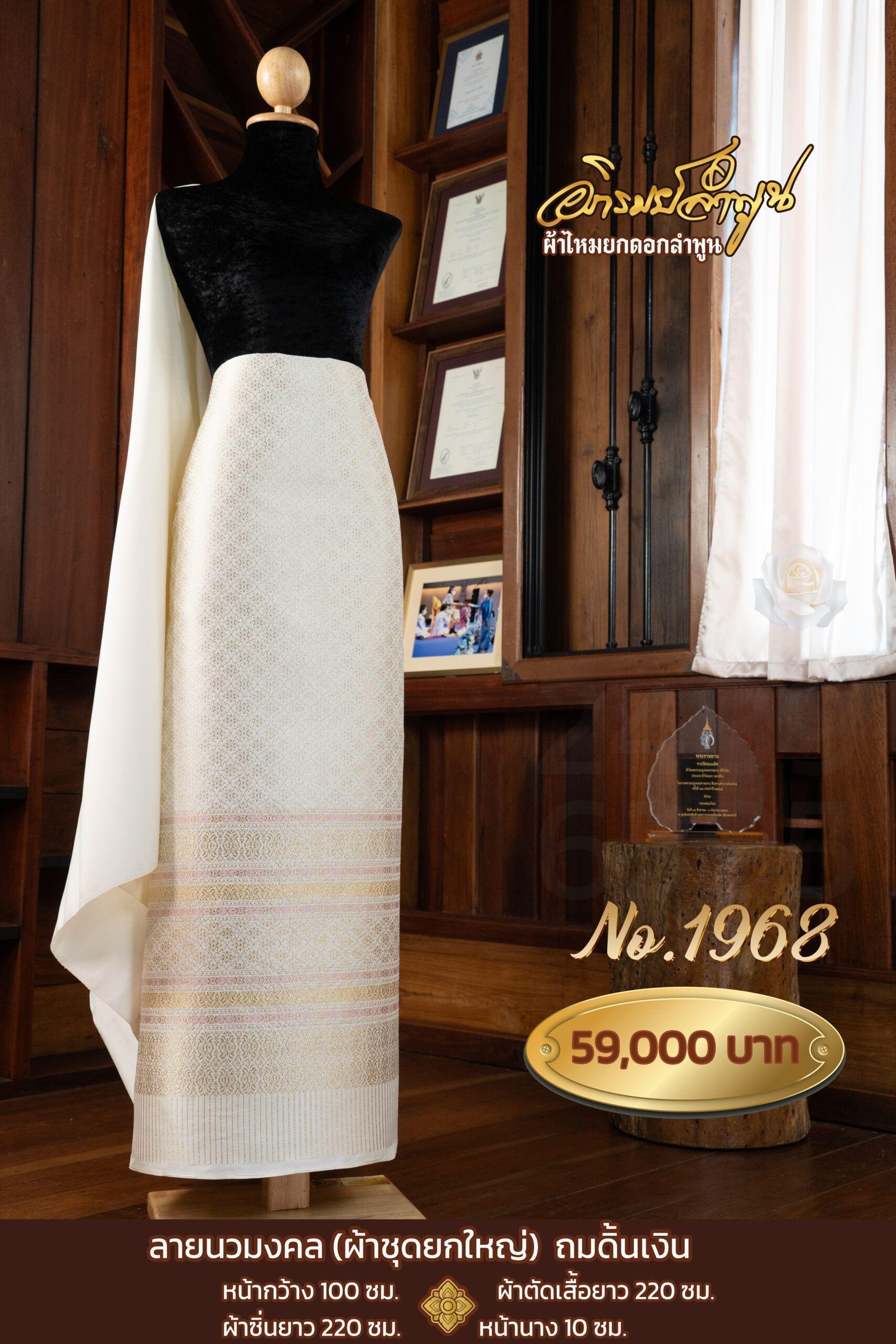 ผ้าชุดยกใหญ่ ลายนวมงคลถมดิ้นเงิน หน้ากว้าง100ซม. ผ้าตัดเสื้อยาว220ซม. ผ้าซิ่นยาว220ซม. หน้านาง10ซม.