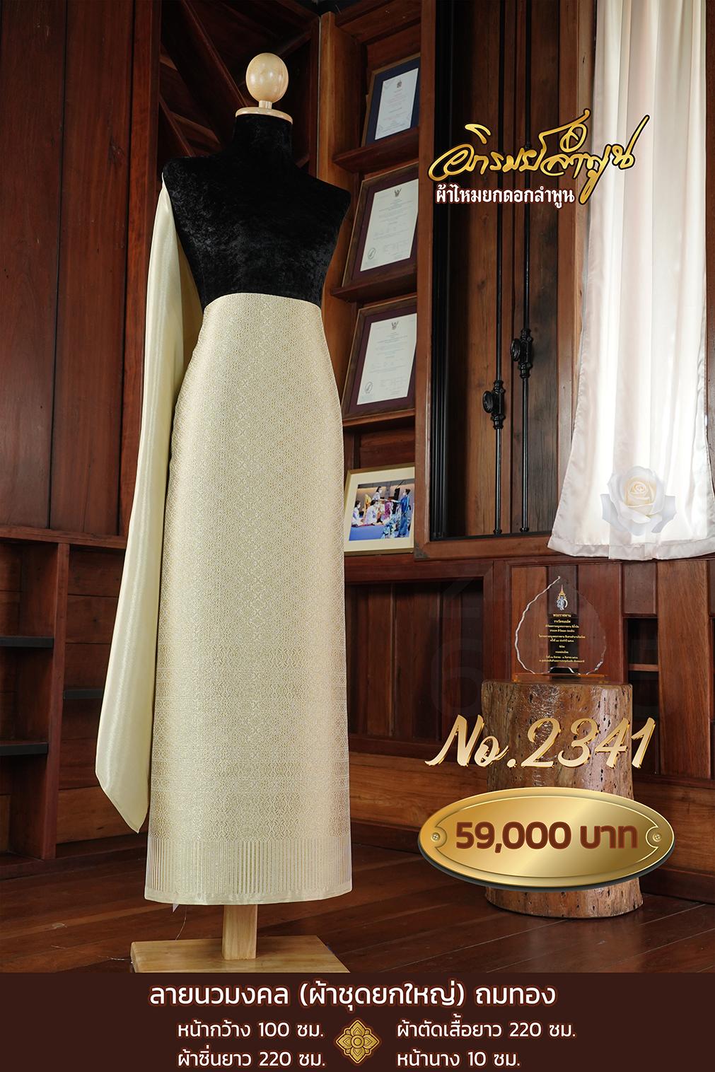 ผ้าชุดยกใหญ่ ลายนวมงคลถมทอง หน้ากว้าง100ซม. ผ้าตัดเสื้อยาว220ซม. ผ้าซิ่นยาว220ซม. หน้านาง10ซม.