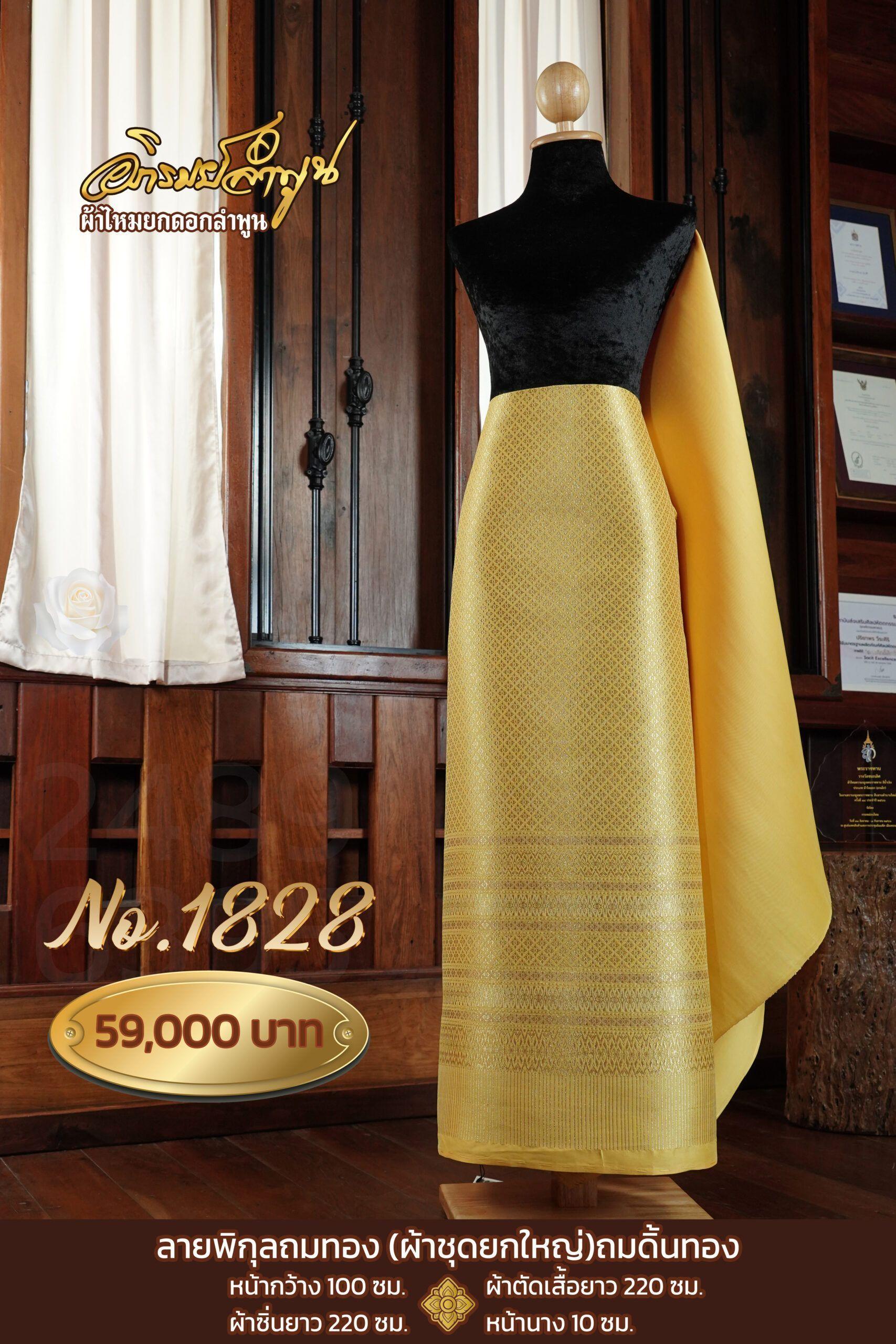 ผ้าชุดยกใหญ่ ลายพิกุลถมทอง ถมดิ้นทอง หน้ากว้าง100ซม. ผ้าตัดเสื้อยาว220ซม. ผ้าซิ่นยาว220ซม. หน้านาง10ซม.