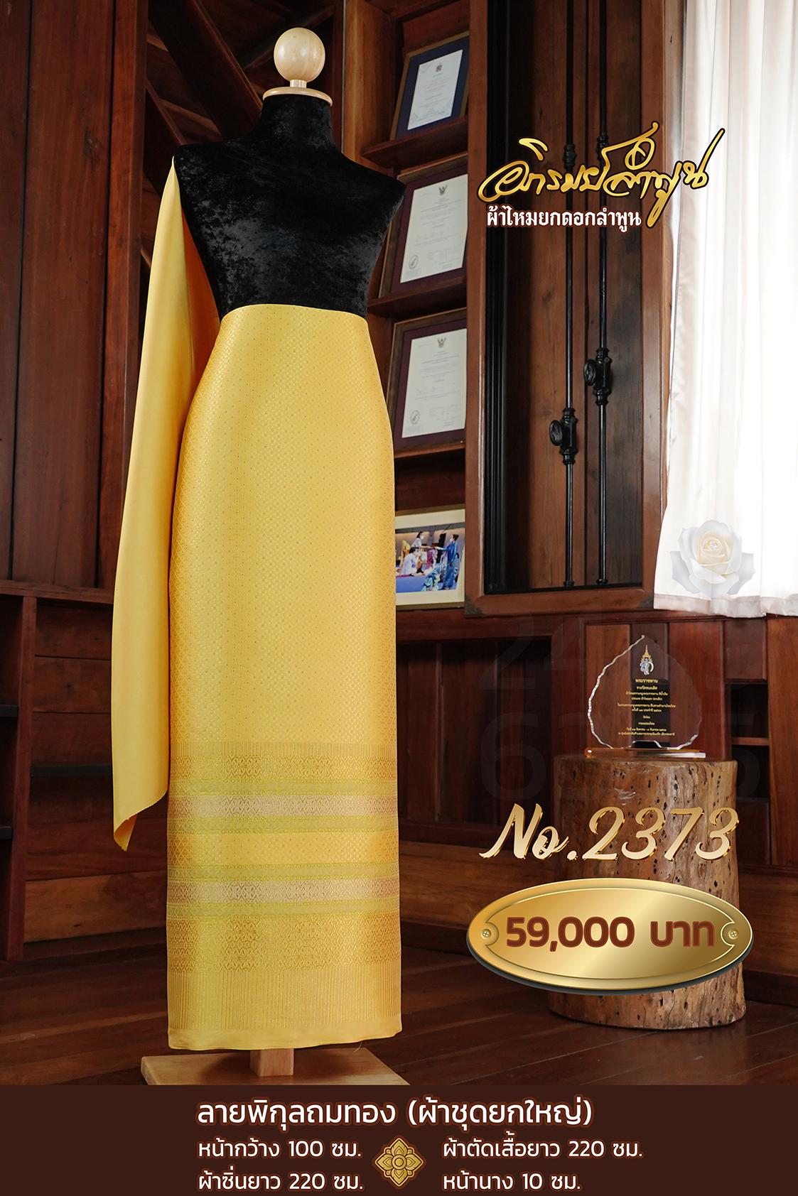 ผ้าชุดยกใหญ่ ลายพิกุลถมทอง หน้ากว้าง100ซม. ผ้าตัดเสื้อยาว220ซม. ผ้าซิ่นยาว220ซม. หน้านาง10ซม.