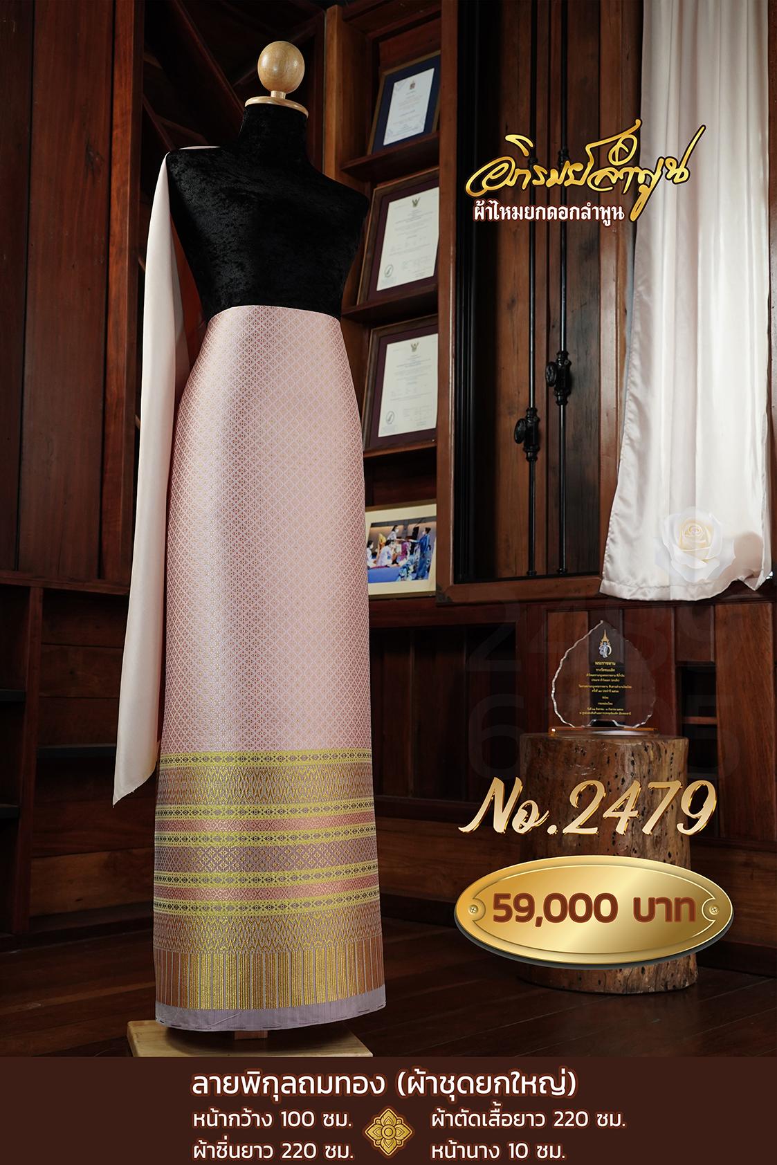 ผ้าชุดยกใหญ่ ลายพิกุลถมทอง หน้ากว้าง100ซม. ผ้าตัดเสื้อยาว220ซม. ผ้าซิ่นยาว220ซม. หน้านาง10ซม.