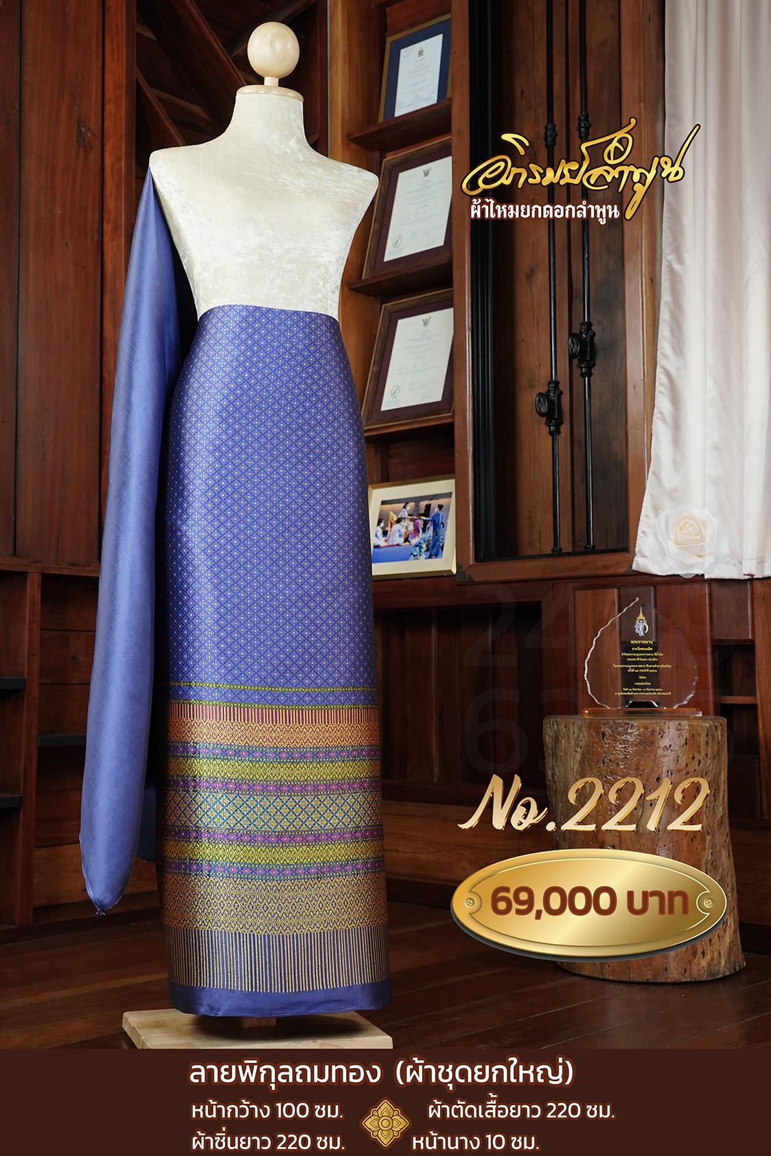 ผ้าชุดยกใหญ่ ลายพิกุลถมทอง หน้ากว้าง100ซม. ผ้าตัดเสื้อยาว220ซม. ผ้าซิ่นยาว220ซม. หน้านาง10ซม.