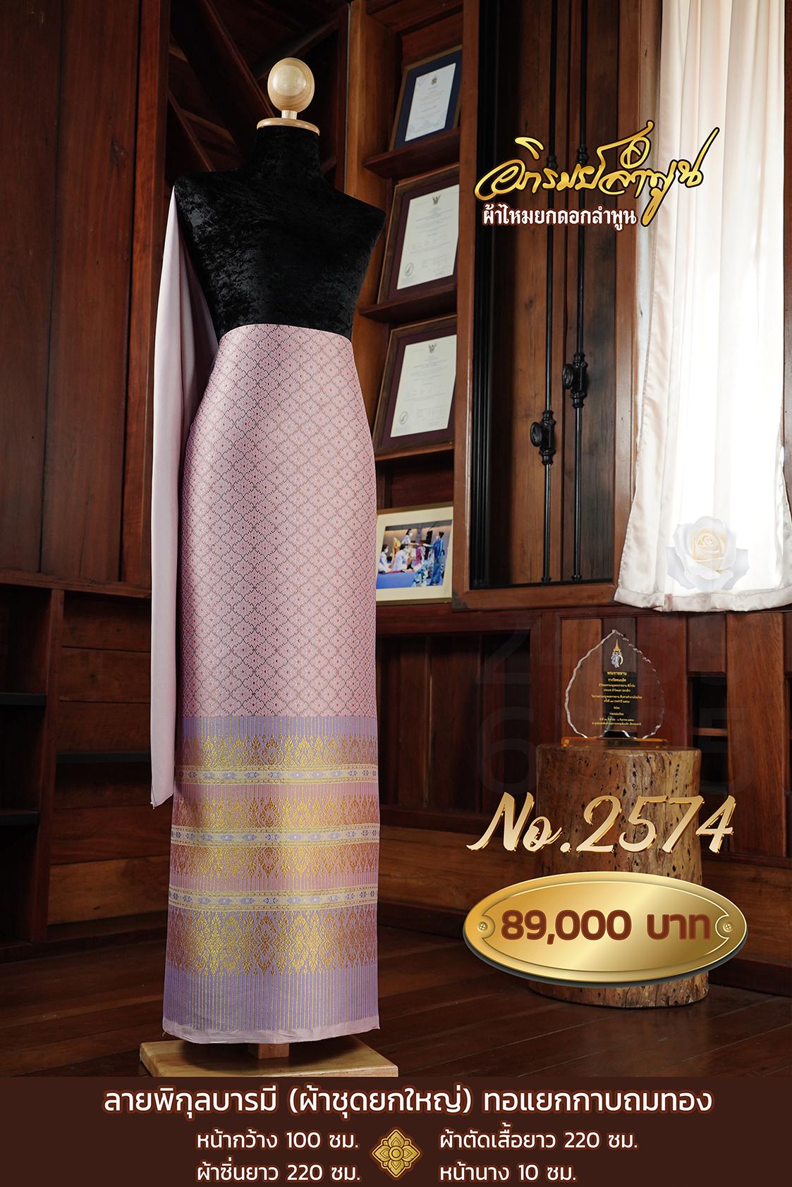 ผ้าชุดยกใหญ่ ลายพิกุลบารมีทอแยกกาบถมทอง หน้ากว้าง100ซม. ผ้าตัดเสื้อยาว220ซม. ผ้าซิ่นยาว220ซม. หน้านาง10ซม.