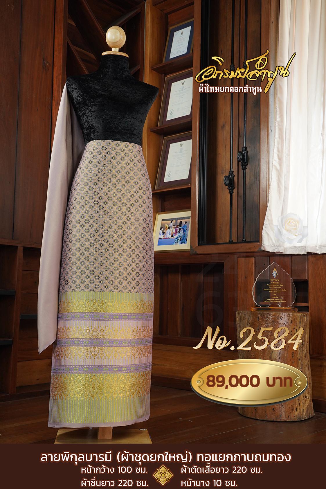 ผ้าชุดยกใหญ่ ลายพิกุลบารมี(ทอแยกกาบถมทอง) No.2584