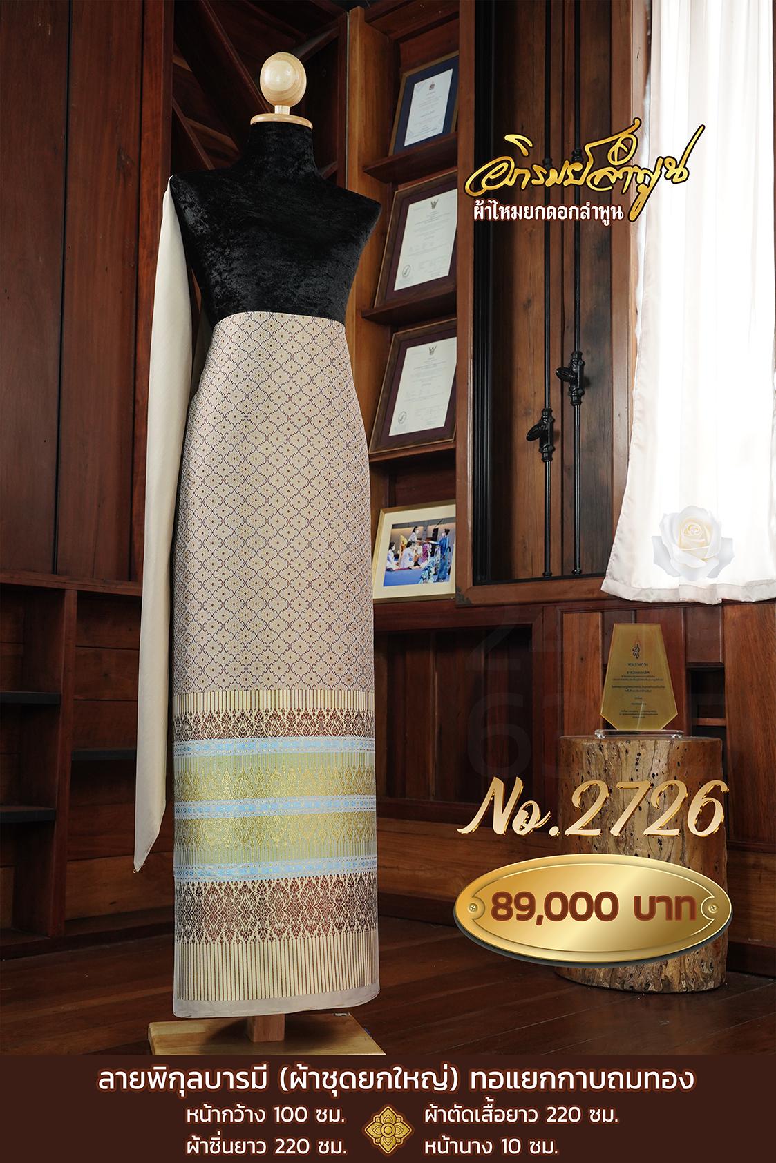 ผ้าชุดยกใหญ่ ลายพิกุลบารมี(ทอแยกกาบถมทอง) No.2726