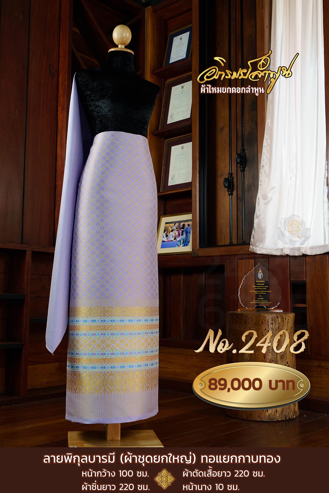 ผ้าชุดยกใหญ่ ลายพิกุลบารมีทอแยกกาบทอง หน้ากว้าง100ซม. ผ้าตัดเสื้อยาว220ซม. ผ้าซิ่นยาว220ซม. หน้านาง10ซม.