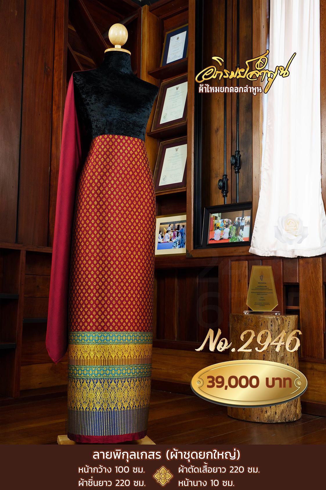 ผ้าชุดยกใหญ่ ลายพิกุลเกสร หน้ากว้าง100ซม. ผ้าตัดเสื้อยาว220ซม. ผ้าซิ่นยาว220ซม. หน้านาง10ซม.