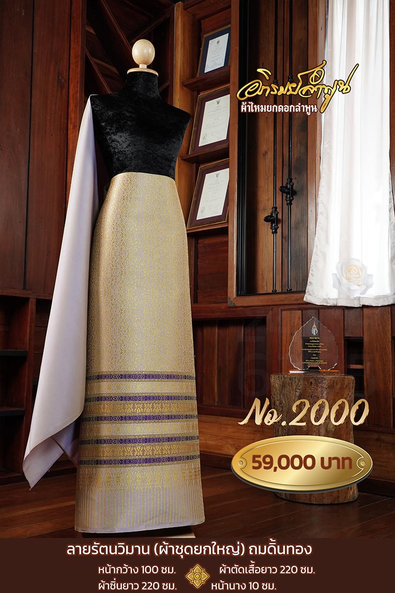 ผ้าชุดยกใหญ่ ลายรัตนวิมานถมดิ้นทอง หน้ากว้าง100ซม. ผ้าตัดเสื้อยาว220ซม. ผ้าซิ่นยาว220ซม. หน้านาง10ซม.