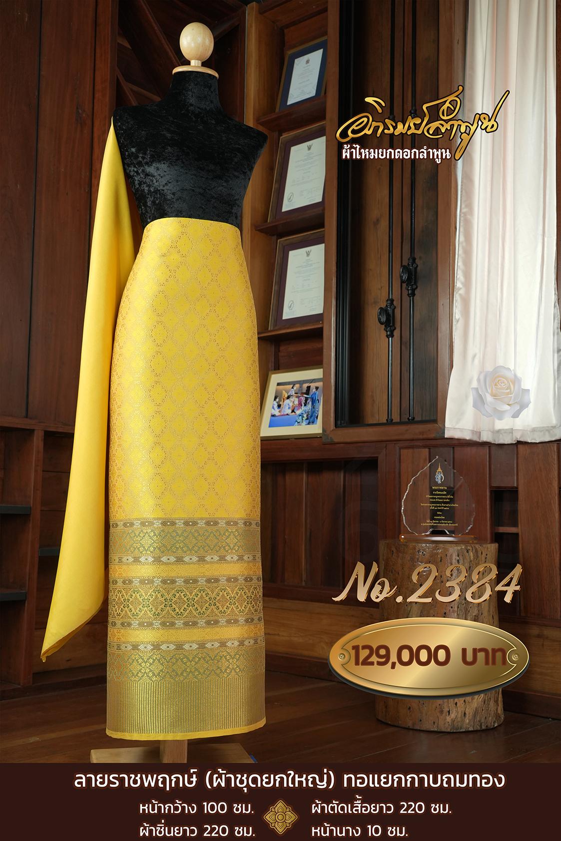 ผ้าชุดยกใหญ่ ลายราชพฤกษ์ทอแยกกาบถมทอง หน้ากว้าง100ซม. ผ้าตัดเสื้อยาว220ซม. ผ้าซิ่นยาว220ซม. หน้านาง10ซม.