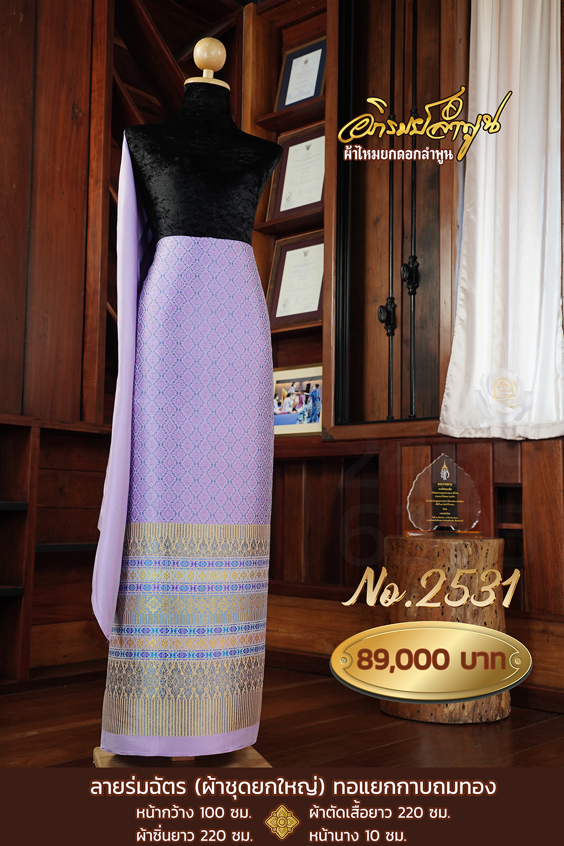 ผ้าชุดยกใหญ่ ลายร่มฉัตร ทอแยกกาบถมทอง No.2531