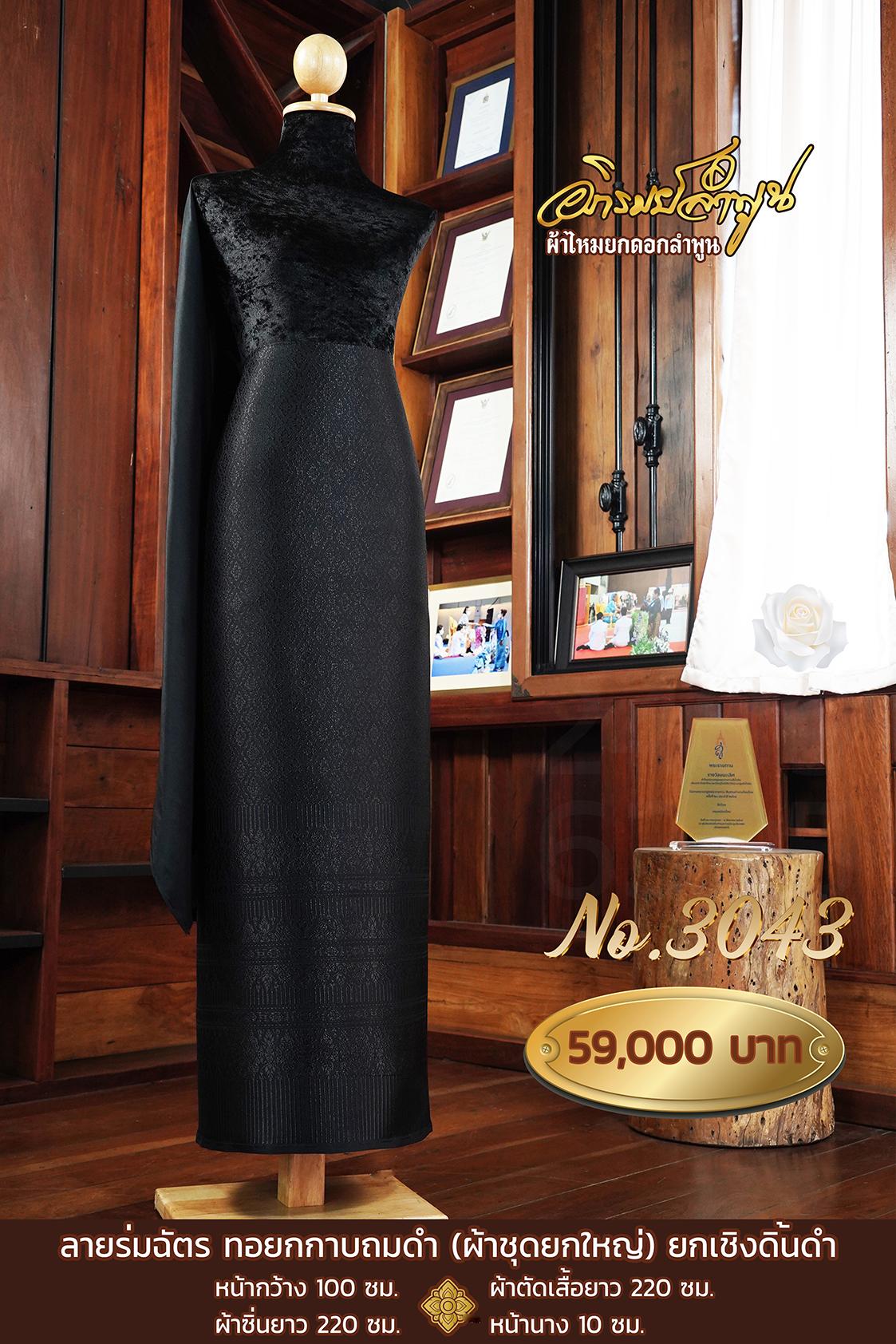 ผ้าชุดยกใหญ่ ลายร่มฉัตร ทอยกกาบถมดำ ยกเชิงดิ้นดำ หน้ากว้าง100ซม. ผ้าตัดเสื้อยาว220ซม. ผ้าซิ่นยาว220ซม. หน้านาง10ซม.