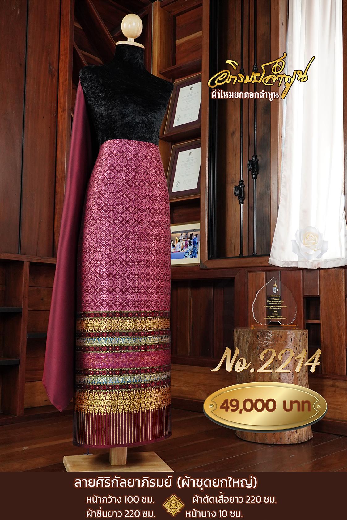 ผ้าชุดยกใหญ่ ลายศิริกัลยาภิรมย์ หน้ากว้าง100ซม. ผ้าตัดเสื้อยาว220ซม. ผ้าซิ่นยาว220ซม. หน้านาง10ซม.