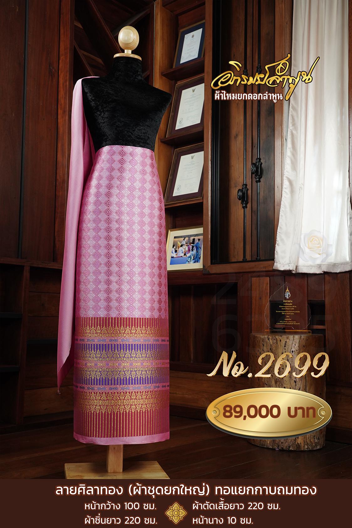 ผ้าชุดยกใหญ่ ลายศิลาทอง(ทอแยกกาบถมทอง) หน้ากว้าง100ซม. ผ้าตัดเสื้อยาว220ซม. ผ้าซิ่นยาว220ซม. หน้านาง10ซม.