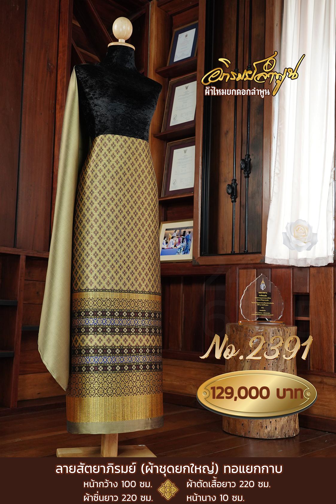 ผ้าชุดยกใหญ่ ลายสัตยาภิรมย์ทอแยกกาบ หน้ากว้าง100ซม. ผ้าตัดเสื้อยาว220ซม. ผ้าซิ่นยาว220ซม. หน้านาง10ซม.