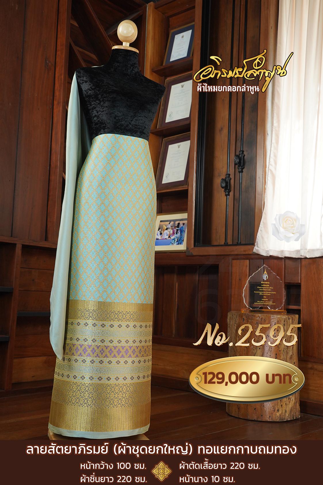 ผ้าชุดยกใหญ่ ลายสัตยาภิรมย์ทอแยกกาบถมทอง หน้ากว้าง100ซม. ผ้าตัดเสื้อยาว220ซม. ผ้าซิ่นยาว220ซม. หน้านาง10ซม.