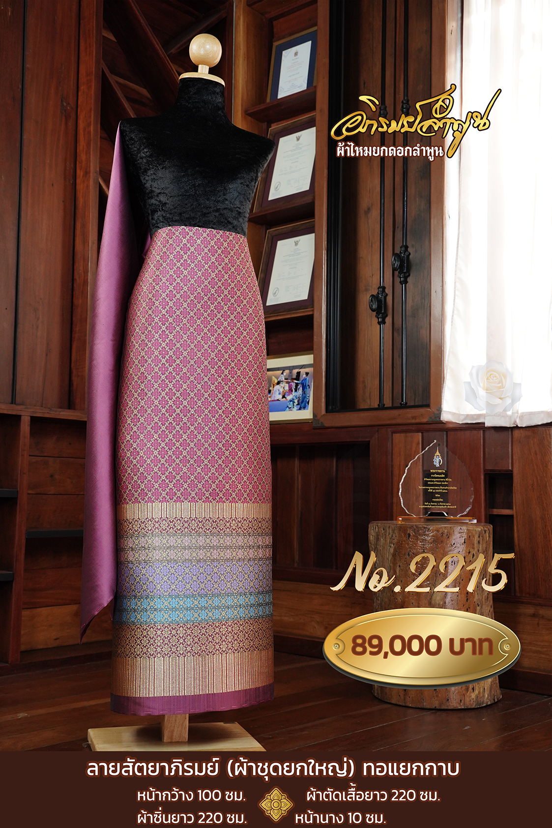 ผ้าชุดยกใหญ่ ลายสัตยาภิรมย์ทอแยกกาบ หน้ากว้าง100ซม. ผ้าตัดเสื้อยาว220ซม. ผ้าซิ่นยาว220ซม. หน้านาง10ซม.