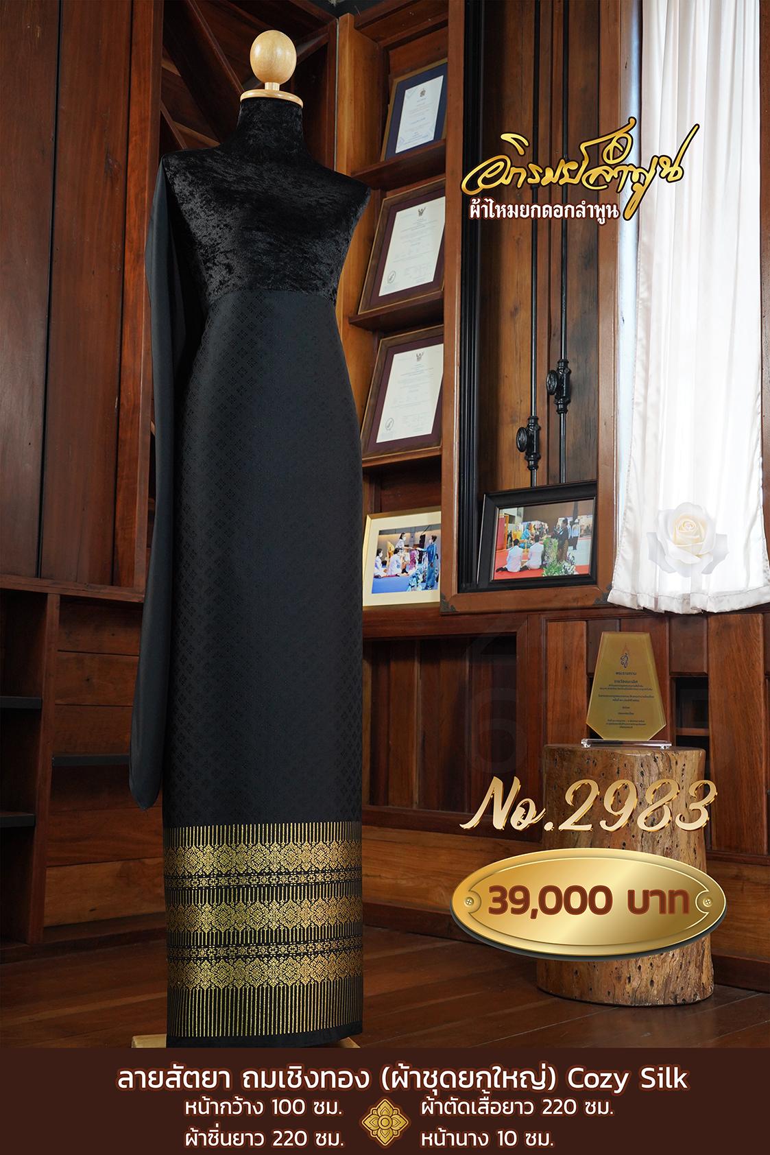 ผ้าชุดยกใหญ่ ลายสัตยา ถมเชิงทอง หน้ากว้าง100ซม. ผ้าตัดเสื้อยาว220ซม. ผ้าซิ่นยาว220ซม. หน้านาง10ซม.