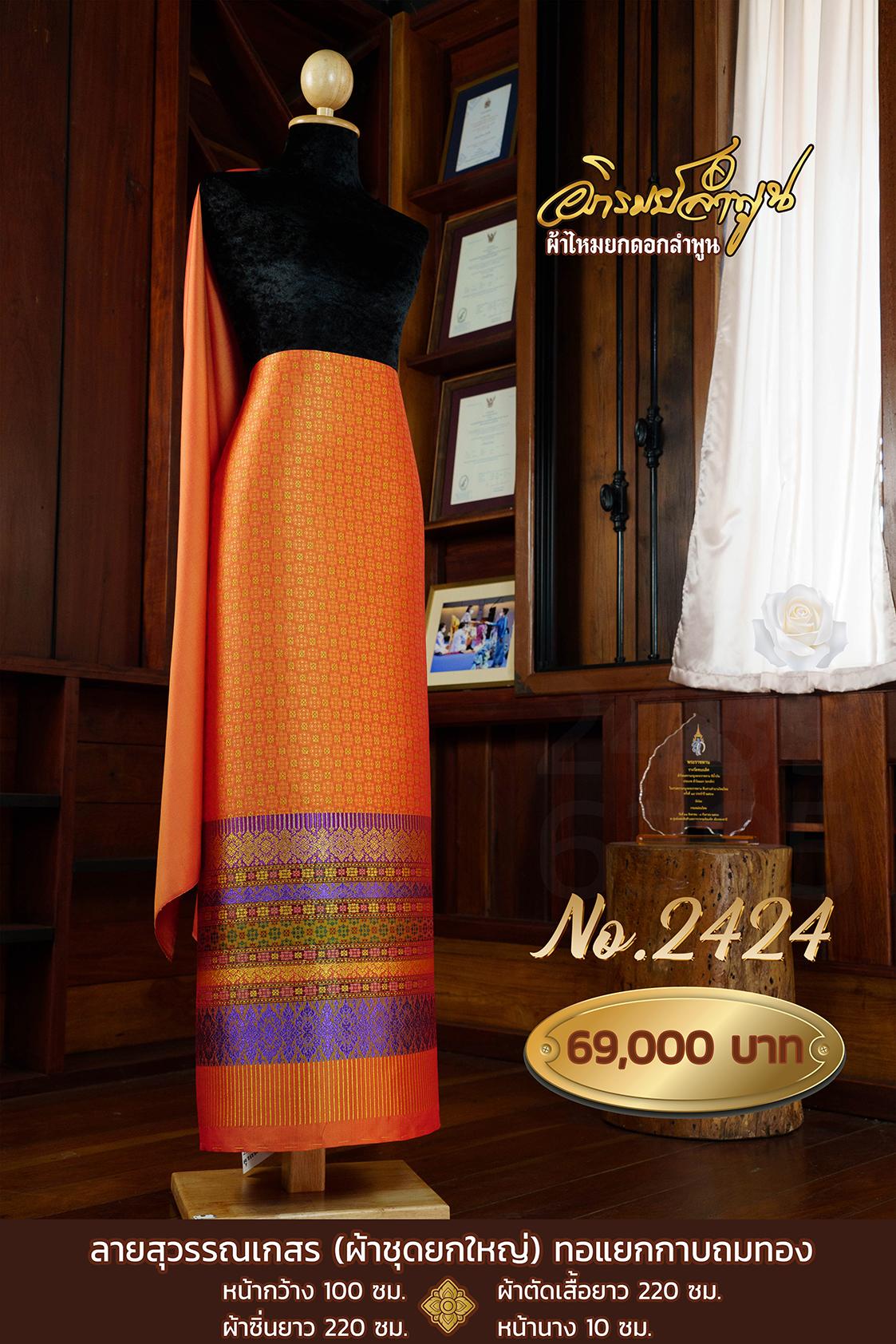 ผ้าชุดยกใหญ่ ลายสุวรรณเกสร(ทอแยกกาบถมทอง) หน้ากว้าง100ซม. ผ้าตัดเสื้อยาว220ซม. ผ้าซิ่นยาว220ซม. หน้านาง10ซม.