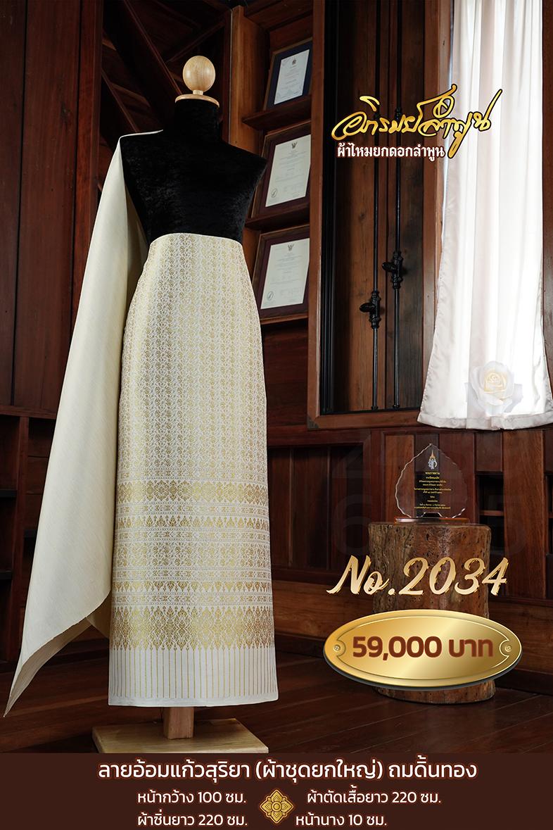 ผ้าชุดยกใหญ่ ลายอ้อมแก้วสุริยาถมดิ้นทอง หน้ากว้าง100ซม. ผ้าตัดเสื้อยาว220ซม. ผ้าซิ่นยาว220ซม. หน้านาง10ซม.