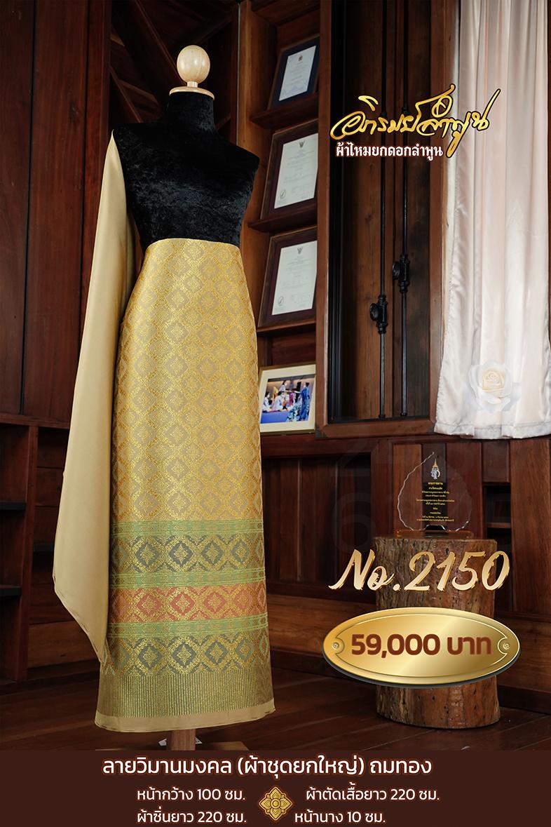 ผ้าชุดยกใหญ่ลายวิมานมงคลถมทอง หน้ากว้าง100ซม. ผ้าตัดเสื้อยาว220ซม. ผ้าซิ่นยาว220ซม. หน้านาง10ซม.