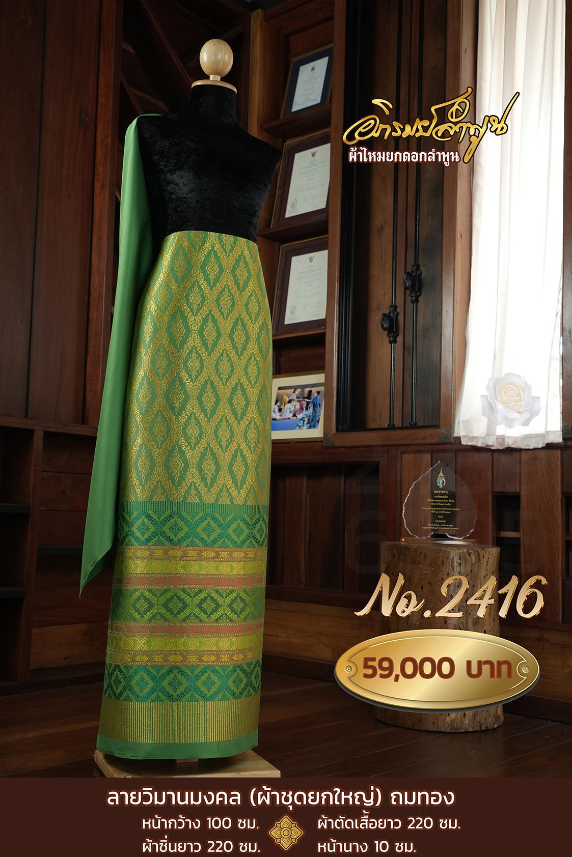 ผ้าชุดยกใหญ่ลายวิมานมงคลถมทอง หน้ากว้าง100ซม. ผ้าตัดเสื้อยาว220ซม. ผ้าซิ่นยาว220ซม. หน้านาง10ซม.