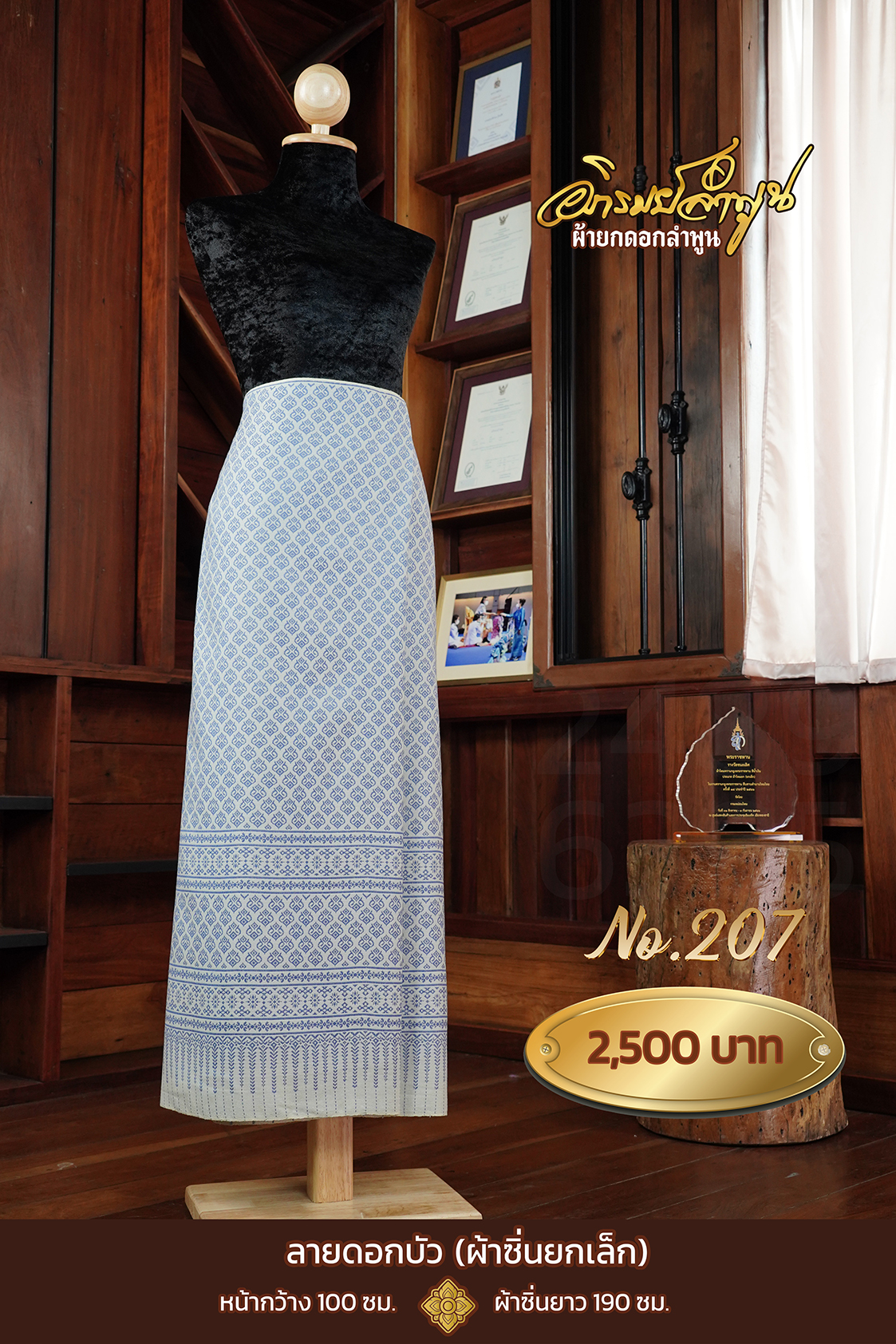 ผ้าซิ่นยกเล็ก ลายดอกบัว No.207 quantity