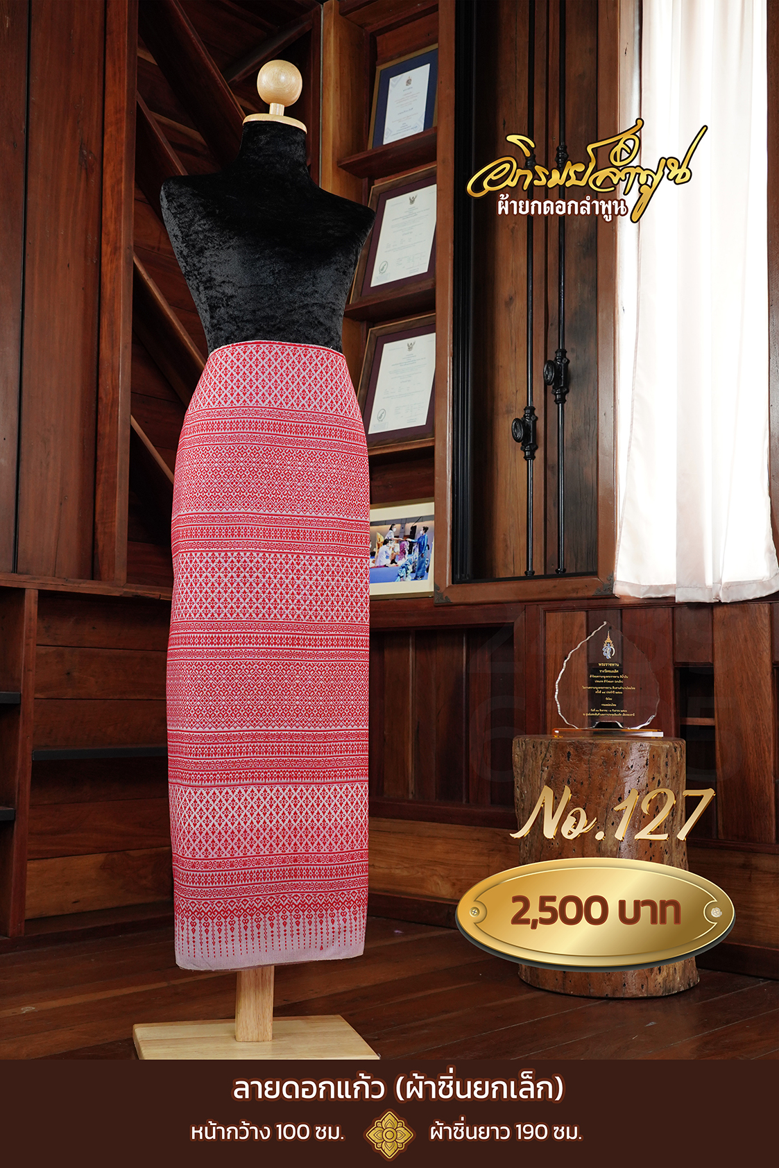 ผ้าซิ่นยกเล็ก ลายดอกแก้ว No.127 quantity