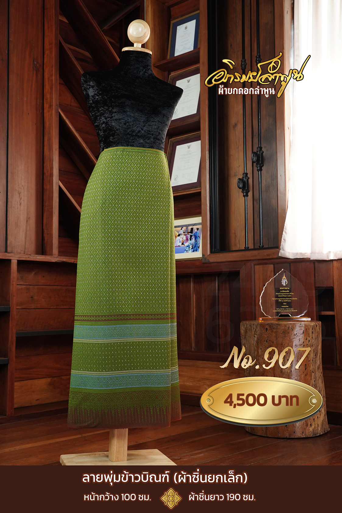 ผ้าซิ่นยกเล็ก ลายพุ่มข้าวบิณฑ์ หน้ากว้าง 100 ซม. ผ้าซื่นยาว 190 ซม.