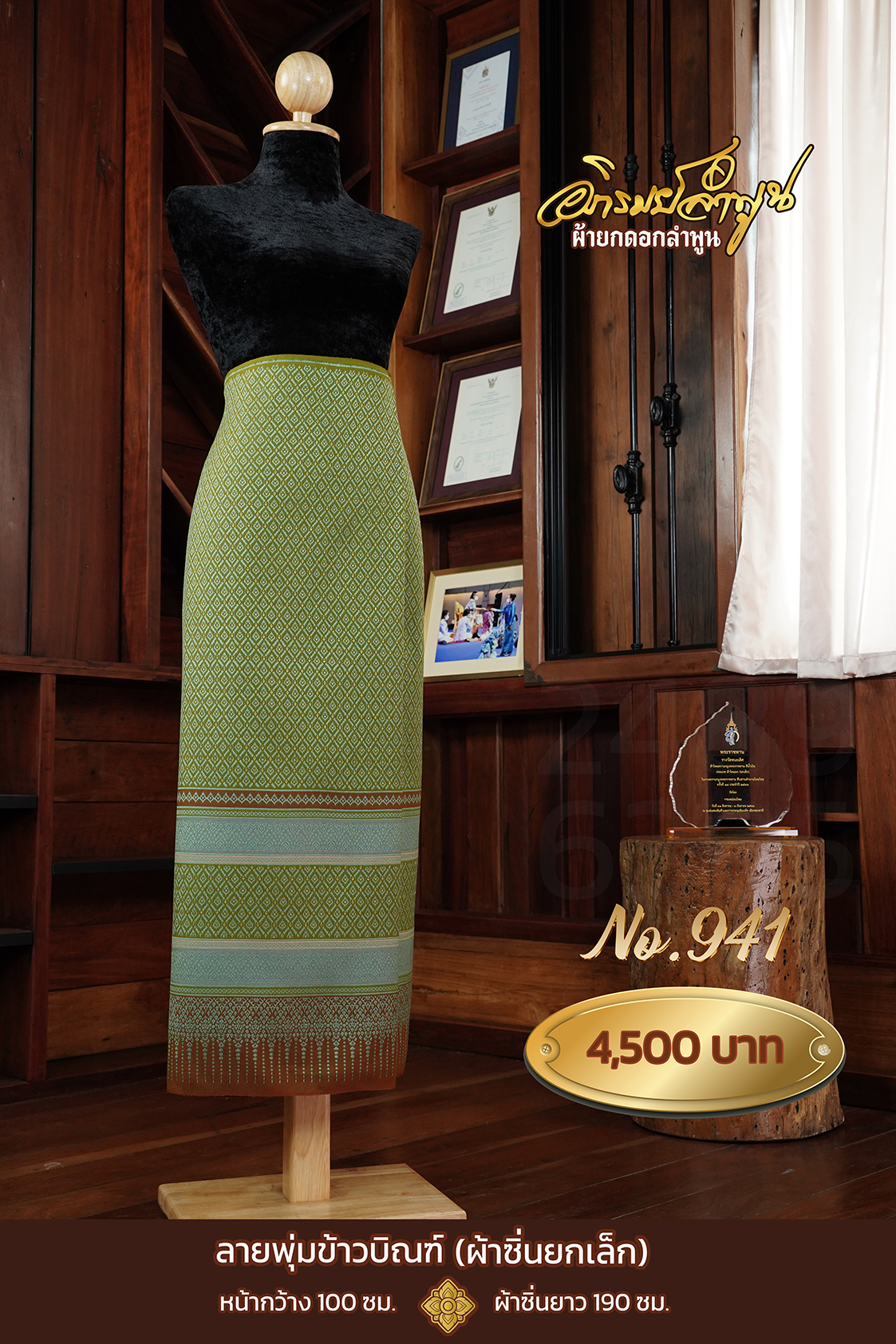 ผ้าซิ่นยกเล็ก ลายพุ่มข้าวบิณฑ์ No.941 quantity