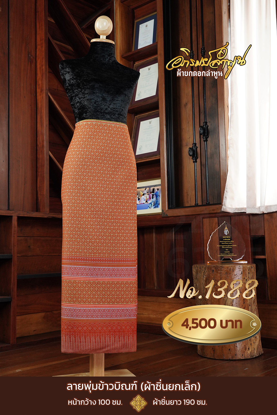 ผ้าซิ่นยกเล็ก ลายพุ่มข้าวบิณฑ์ No.1388 quantity