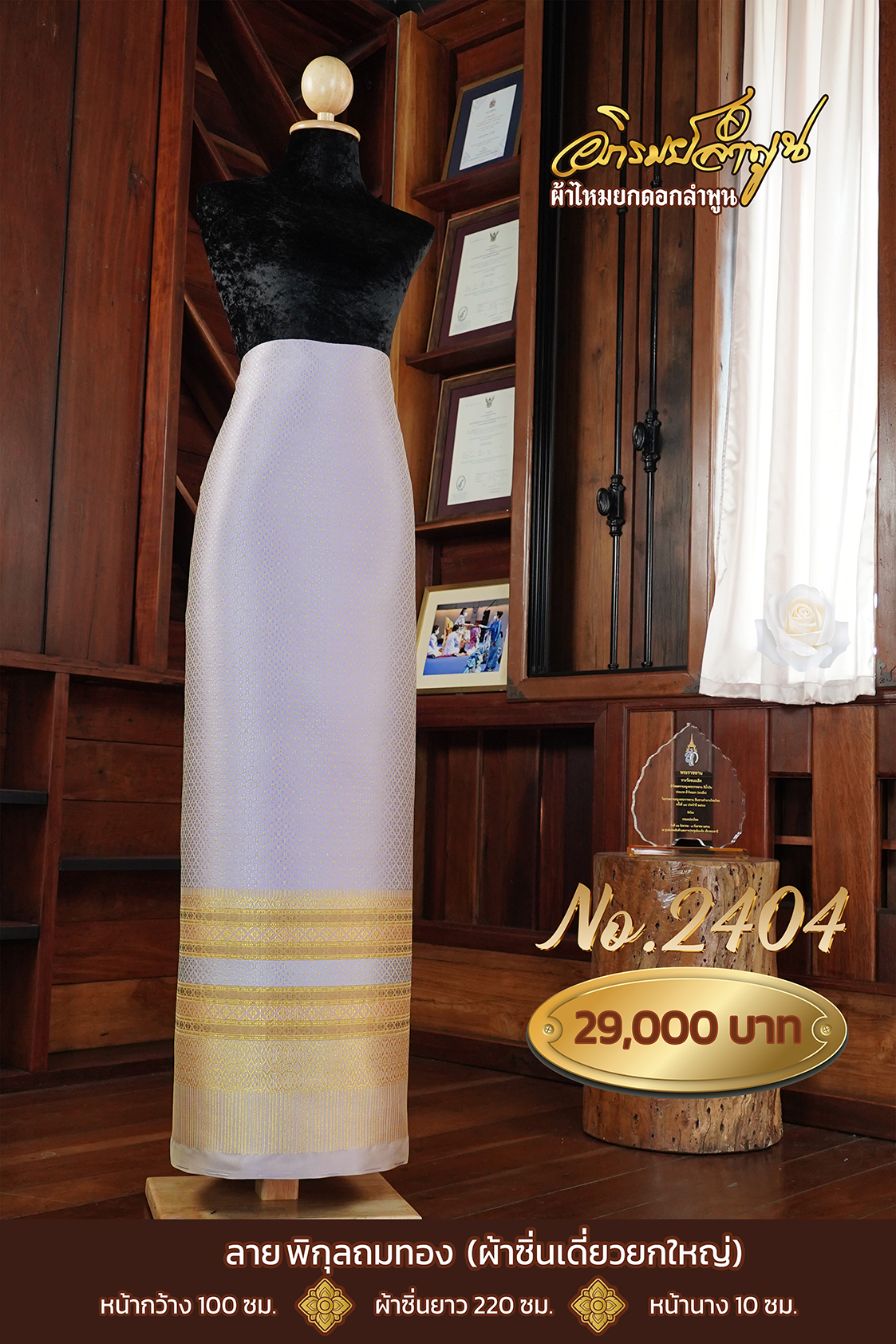 ผ้าไหมยกดอกลำพูน ลายพิกุลถมทอง (ผ้าซิ่นเดี่ยวยกใหญ่) No.2404