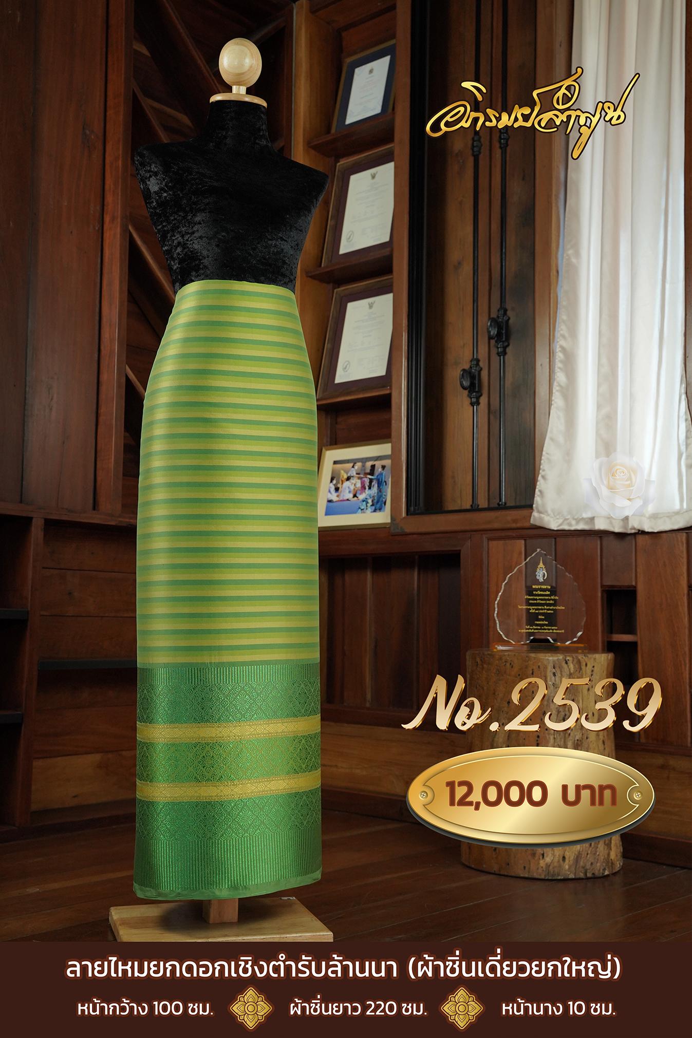 ผ้าซิ่นเดี่ยวยกใหญ่ ลายไหมยกดอกเชิงตำรับล้านนา หน้ากว้าง 100 ซม. ผ้าซิ่นยาว 220 ซม. หน้านาง 10 ซม.