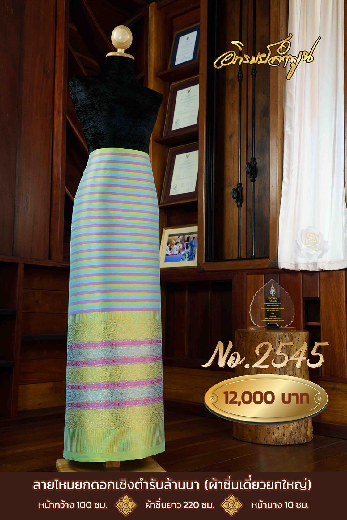 ผ้าซิ่นเดี่ยวยกใหญ่ ลายไหมยกดอกเชิงตำรับล้านนา หน้ากว้าง 100 ซม. ผ้าซิ่นยาว 220 ซม. หน้านาง 10 ซม.